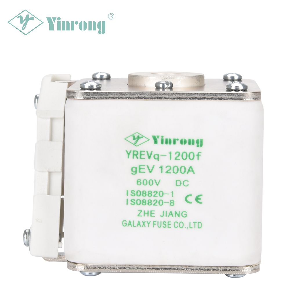 Proveedor chino de fusibles para vehículos de nueva energía Galaxy Fuse (Yinrong) Los fusibles gEV de la serie YREVq están especialmente diseñados y probados para proporcionar una protección auxiliar óptima y una protección de alto rendimiento en sistemas eléctricos y vehículos eléctricos híbridos, voltaje a 690 V CC y 750 V CC, corrientes de 850 a 1200 A. El YREVq-1200f con estilo Full-end puede cumplir específicamente con los requisitos y estándares de la industria de vehículos eléctricos.